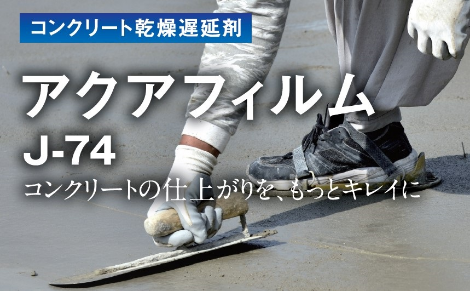 アクアフィルムJ-74を散布することで生コンクリート打設後、有機成分配合エマルジョン油がコンクリート内部から表面に浮き出る水分蒸発を抑制してコンクリート全体の水和反応をしっかり促進させることで表層部を緻密化させプラスチック収縮ひび割れの少ない耐久性の高いコンクリートを作りコンクリートの仕上がりを良くする効果があります。