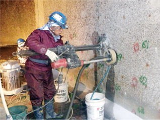 削孔後に施工する「目粗し処理」により、孔壁面に凹凸が施され鉄筋端部の定着体により既設躯体との一体性が向上し、高いせん断補強効果が得られます。
